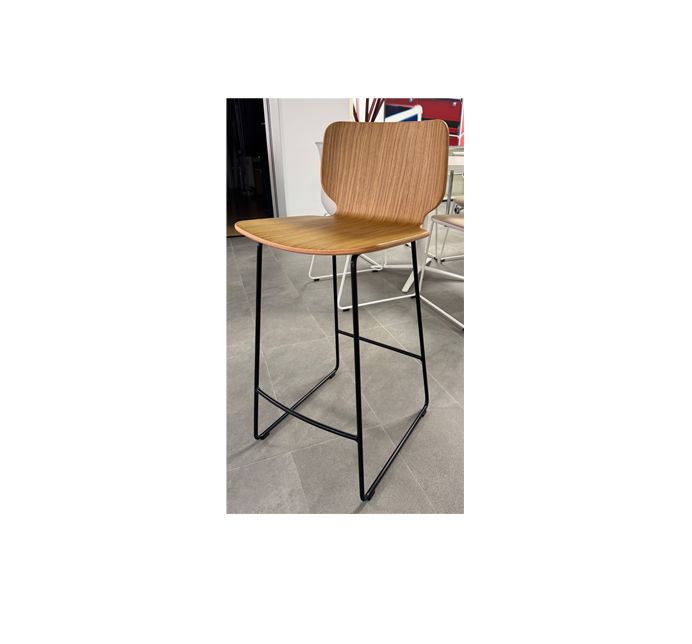 Taburete asiento en madera y estructura en acero pintado color negro.